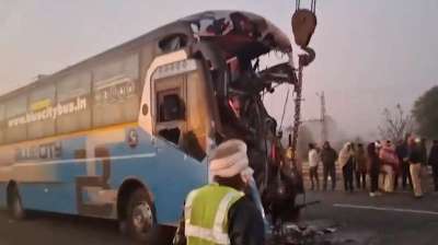 उज्जैन महाकाल दर्शन उपरांत कोहरे के कारण दिल्ली जाते समय राजस्थान मे हुई बस दुर्घटनाग्रस्त