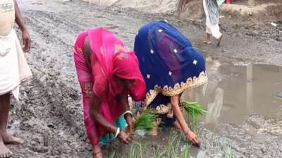 सड़क नहीं बनी तो खेत बना डाली सड़क! बड़खेड़ा में महिलाओं ने रोप दी धान की फसल