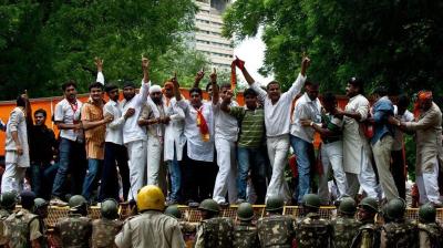 कलेक्ट्रेट घेराव से पहले रोके गए प्रदर्शनकारी, पानी की बौछार से तितर-बितर