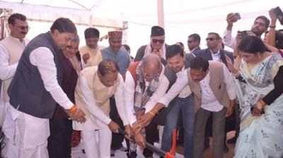 भूमिपूजन समारोह में शामिल सांसद...
