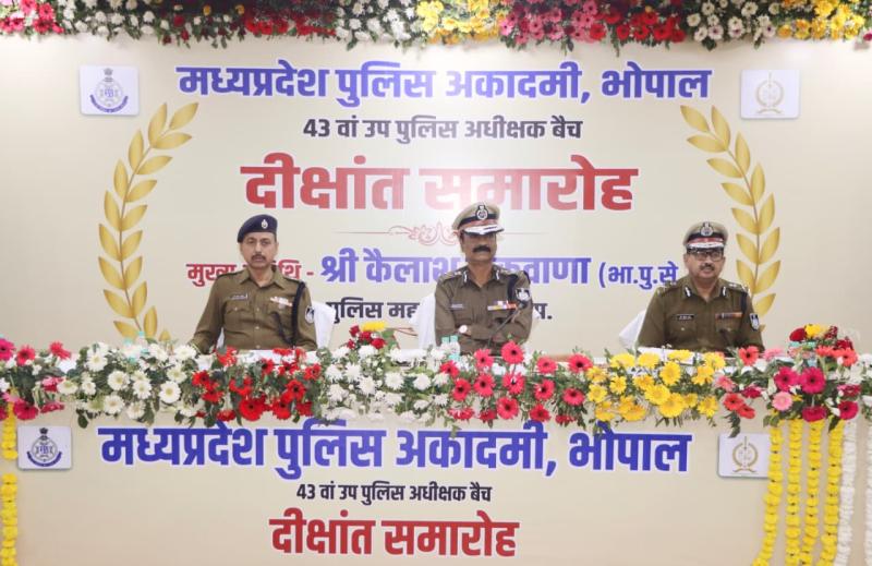 भोपाल। दिनांक 27.02.2026 को मध्यप्रदेश पुलिस अकादमी, भोपाल में 43 वें उप पुलिस अधीक्षक बैच का दीक्षांत समारोह श्री कैलाश मकवाणा, पुलिस महानिदेशक मध्यप्रदेश के मुख्य आतिथ्य में हुआ। कार्यक्रम का शुभारंभ राष्ट्रीय गीत एवं राष्ट्रगान के साथ हुआ।