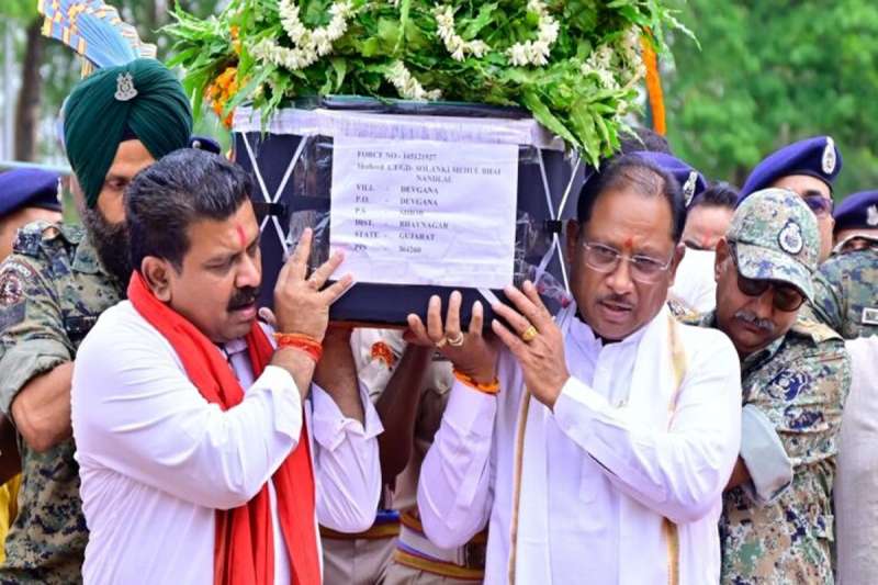 मुख्यमंत्री ने कहा कि जवानों की शहादत व्यर्थ नहीं जाएगी। सरकार शहीद के परिवार के साथ खड़ी है और उन्हें हरसंभव सहायता प्रदान करेगी। कांस्टेबल सोलंकी मेहुल भाई का बलिदान वीरता और राष्ट्र के प्रति समर्पण की सर्वोच्च परंपरा को दर्शाता है। इस अवसर पर राज्य के गृह मंत्री विजय शर्मा, विधायक मोतीलाल साहू, विधायक पुरंदर मिश्रा, पुलिस महानिदेशक अरुण देव गौतम सहित बड़ी संख्या में जनप्रतिनिधि, अधिकारी और नागरिक उपस्थित थे।