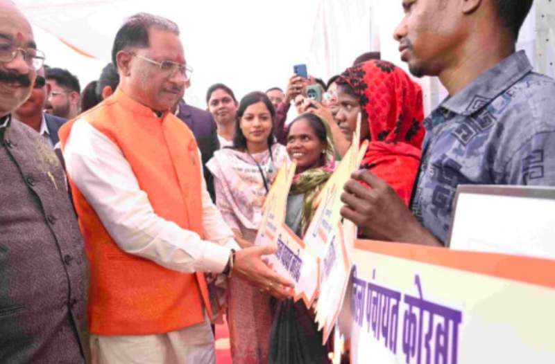 रायपुर। मुख्यमंत्री विष्णु देव साय ने कोरबा प्रवास के दौरान सीएसईबी फुटबॉल ग्राउंड में आयोजित कार्यक्रम में शासकीय विभागो के द्वारा लगाए गए स्टालों का अवलोकन किया। उन्होंने पीएम जनमन योजना के तहत विशेष पिछड़ी जनजाति के 3 हितग्राहियों को आवास की खुशियों की चाबी सौंप कर गृह प्रवेश के लिए शुभकामनाएं दी। इस अवसर पर मुख्यमंत्री ने हितग्राहियों को अनुदान राशि के चेक और सामग्री प्रदाय की। मुख्यमंत्री विष्णुदेव साय ने जिला पंचायत के स्टॉल में प्रधानमंत्री जनमन योजना के तहत अजगरबहार की दुखी बाई बिरहोर, रामधर बिरहोर और सुमति बाई कोरवा को नए आवास की चाबी प्रदाय की और गृह प्रवेश हेतु शुभकामनाएं दी। इसके साथ ही प्रधानमंत्री आवास शहरी योजना के तहत मेमबाई राठौर,गनेशी चंद्रा और राजमति को आवास की चाबी प्रदान की।