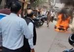 जिला न्यायालय के पास चलती बाइक बनी आग का गोला, मचा हड़कंप -