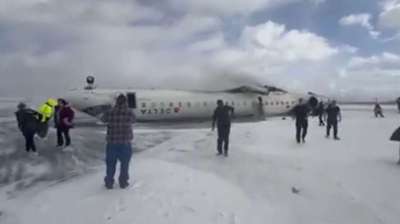 टोरंटो में डेल्टा एयरलाइंस का विमान क्रैश, लैंडिंग के दौरान पलटा