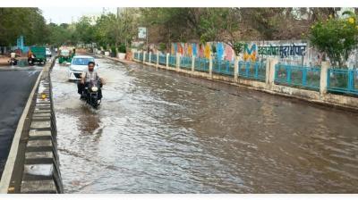 भोपाल में लोक भवन के सामने सड़क धंसी, पानी बहने से बिगड़े हालात