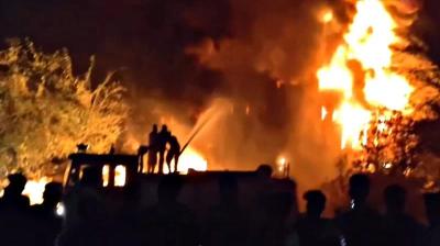 बुरहानपुर के प्लास्टिक गोदाम में भीषण आग, आग बुझाने में 20 दमकल वाहनों के निकले दम
