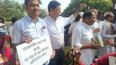 बजट से पहले विपक्ष का हंगामा, खाली गुल्लक लेकर किया प्रदर्शन